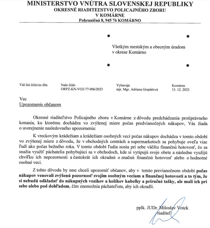 Upozornenie pre občanov počas sviatkov Typ: PNG obrázok, Velkosť: 244.19 kB